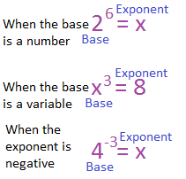 In order to do that, we have to use inverse operations to get everything to the other side of the equation. Solve for x in the equation. Exponents are shorthand for repeated multiplication of the same thing by itself. Let us see some other examples to make the concept clear. So, you will express the movement with an e.